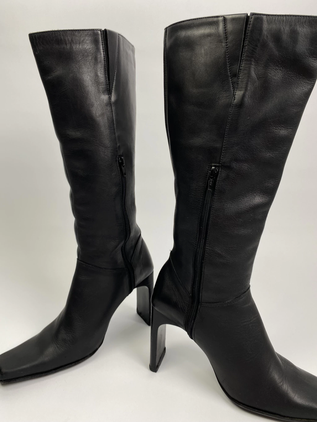 Bota cano alto feita em couro legítimo, possui salto e bico quadrado. Com zíper na lateral interna. Ótimo estado.